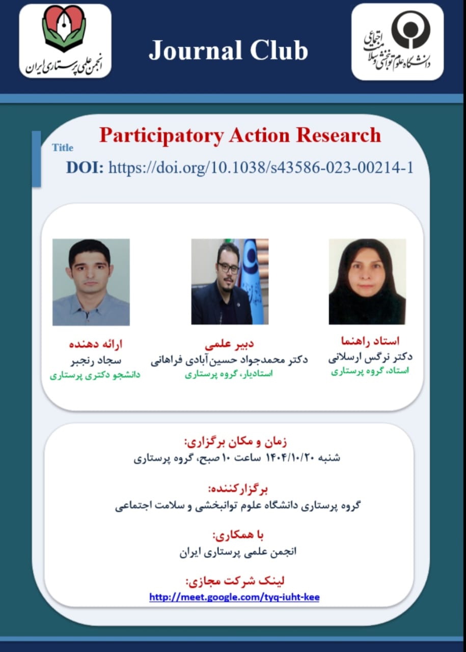 - برگزارکننده : گروه پرستاری دانشگاه علوم توانبخشی و سلامت اجتماعی با همکاری انجمن علمی پرستاری ایران